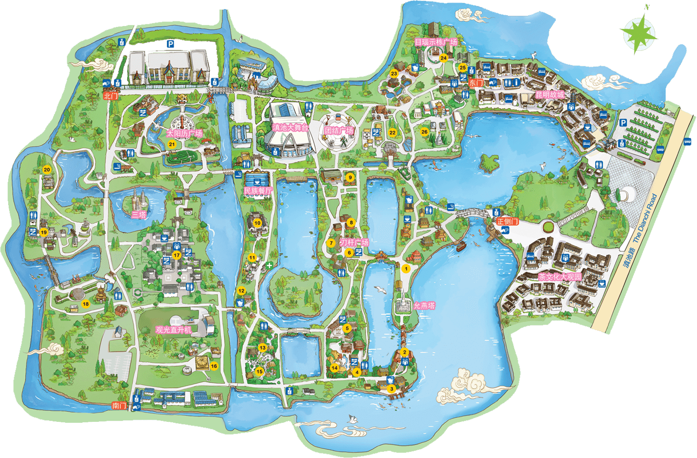 哈尼族是我國西南邊疆歷史悠久的農耕民族,人口約130余萬,主要居住在云南省紅河、元江、瀾滄江流域的無量山區(qū)和哀牢山區(qū)。哈尼寨占地15畝,展現了最具有代表性的蘑菇房和愛尼母子房,日月廣場;有表現哈尼族關于魚生萬物傳說的大型浮雕,有表現哈尼族遷徙傳說的圖騰柱;有體現生產生活的磨房、龍巴門、秋千場、梯田;寨神樹和祭石表現了哈尼族“萬物有靈、多神崇拜”的宗教信仰。哈尼傳統的節(jié)日有“年首扎勒特”、“苦扎扎”...